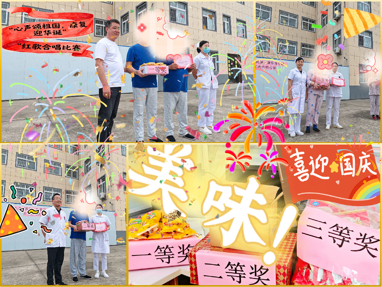 评委们从精神面貌、歌声表现和团队配合等多维度综合评分,最终评选出一、二、三等奖,并为获奖队伍颁发奖项。获奖病友们脸上洋溢着自豪的笑容,这份荣誉不仅是对他们艺术表现的肯定,更是对康复成果的最佳见证。活动尾声,全体医护人员、病友及观众起立,共同唱响《歌唱祖国》,挥舞的国旗与嘹亮的歌声交织,凝聚了对祖国繁荣昌盛的真挚祝福。